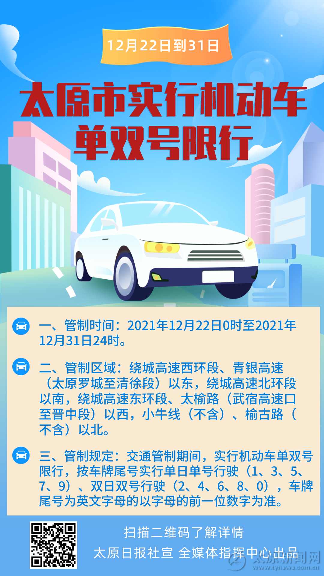 新聞海報(bào):12月22日到31日太原市實(shí)行機(jī)動(dòng)車單雙號(hào)限行