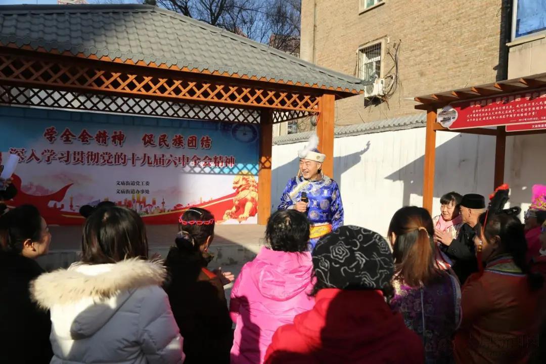 近日,室外寒意襲人,太原市迎澤區文廟街道山右巷社區的黨史小院內卻氣氛熱烈,身著各色民族服裝的群眾載歌載舞、歡聲笑語。原來,是社區的“石榴籽”宣講隊走進了黨史小院,為居民群眾宣講黨的十九屆六中全會精神,給大家送去精神“大禮包”。