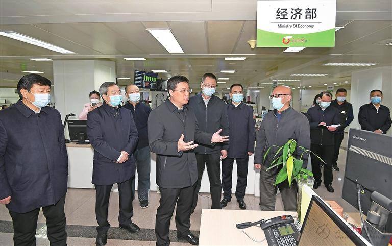 圖為省委常委、市委書記韋韜在太原日報社新聞采編中心實地察看新聞采編工作情況,慰問工作人員。梁琛 攝