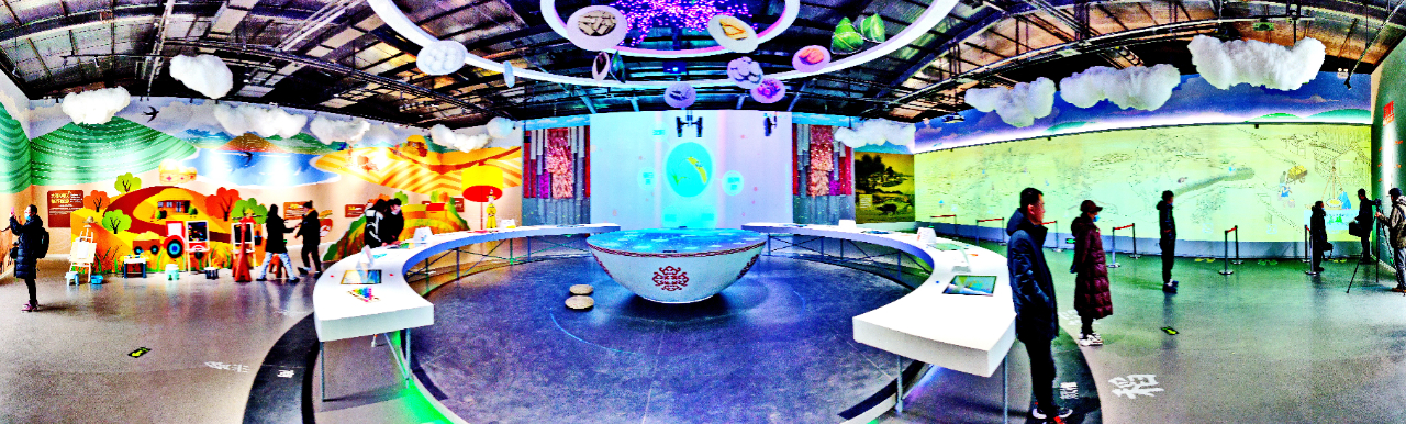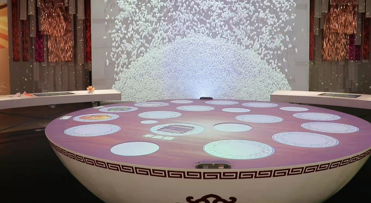 展館中心以“碗”為造型的互動(dòng)體驗(yàn)區(qū),擺滿的盤碟輕輕一碰就變成一道道“佳肴”。