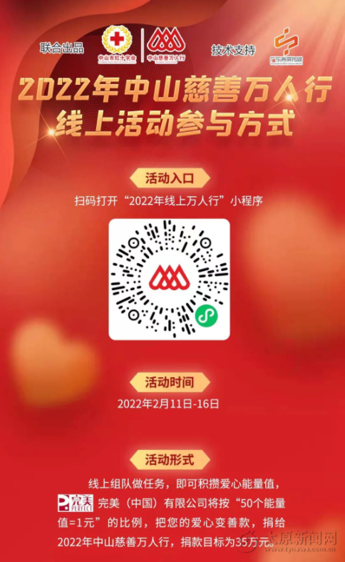 其中,慈善萬人行微信小程序自2月11日上線以來,參與“云巡游”人數(shù)達數(shù)十萬,通過靈活有趣的互動積攢愛心能量值,由完美公司按“50個能量值=1元”的比例換算成善款,捐給2022年中山慈善萬人行,愛心捐步的捐款目標為35萬元。