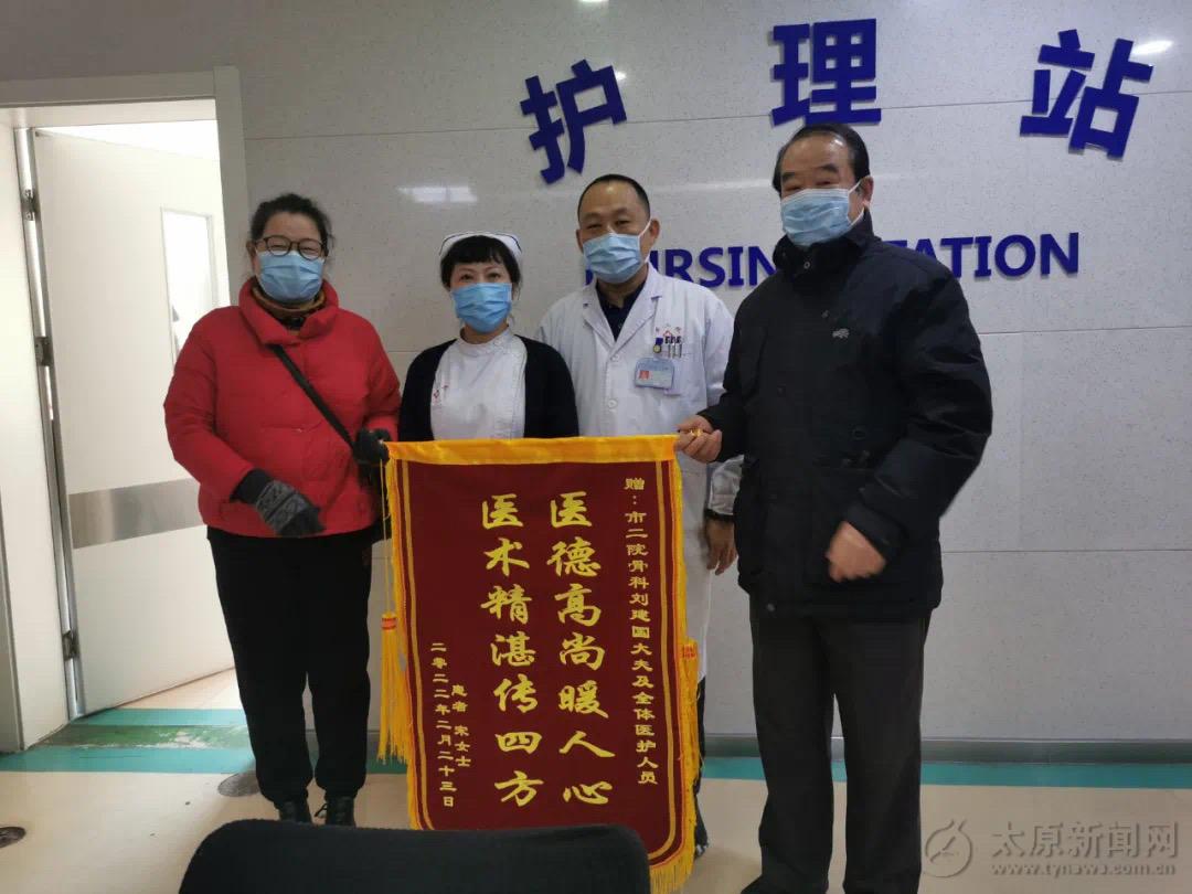 近日,太原市第二人民醫院骨科收治一名85歲高齡股骨粗隆間粉碎性骨折患者,患者合并有冠心病、高血壓等多種慢性病。在麻醉科、心內科、超聲診斷科等相關科室的配合下,發揮老年專科醫院學科優勢,短時間內完成了風險評估,成功施行微創手術治療,在骨科醫護人員的精心治療護理下,術后一周老人康復痊愈出院。患者家屬還為科室醫護人員送來錦旗表示感謝。