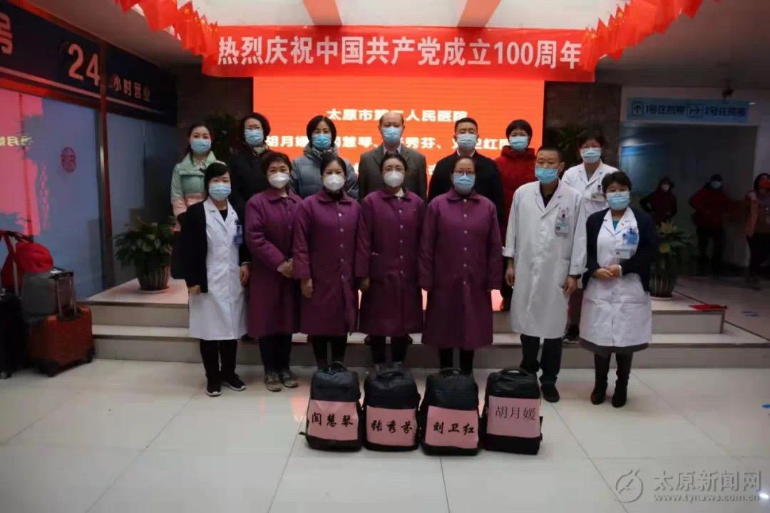 2022年2月25日上午,太原市第二人民醫院在醫院門診大廳為胡月媛、閆慧琴、張秀芬、劉衛紅四名醫護人員舉行支援太原市第四人民醫院抗擊疫情簡短歡送儀式。