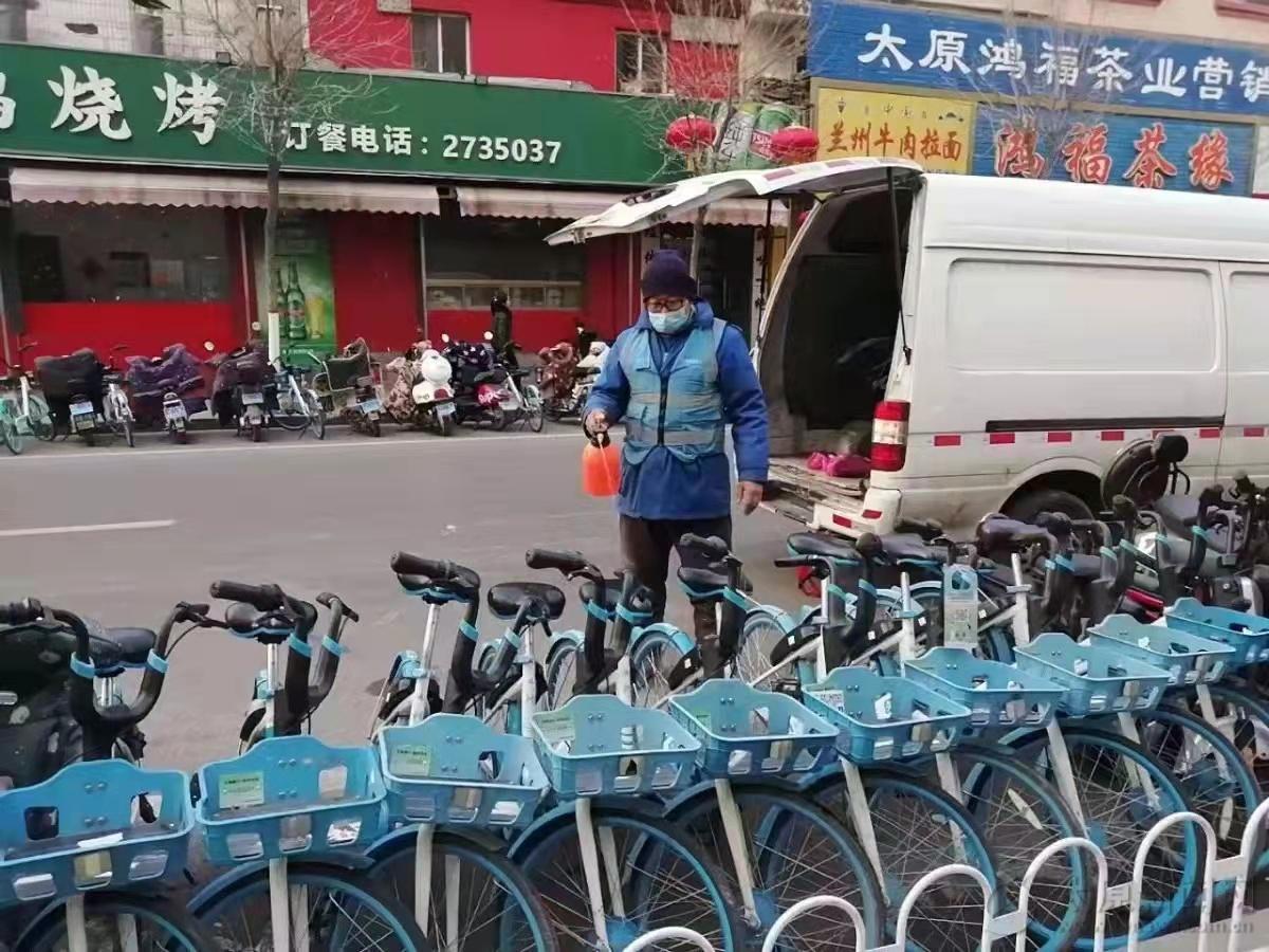 市交通運輸綜合行政執法隊公共交通和共享汽(單)車負責人王光瑞表示,為積極響應疫情防控要求,防止疫情通過公共交通工具傳播,執法隊要求各家單車企業“無差別消毒”,在我市街道上不分品牌、不分顏色對所有共享單車進行消毒,全力筑起出行防疫的安全屏障。目前,我市共享單車已全面消毒,市民可以放心騎行。
