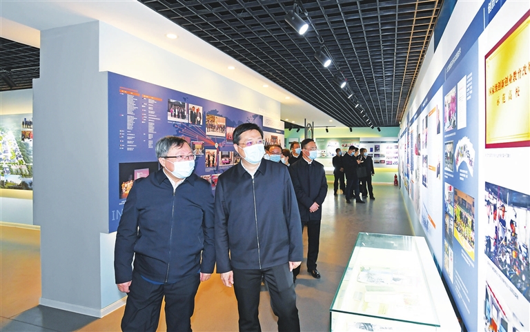 省委常委、市委書(shū)記韋韜在山西大學(xué)校史館了解山西大學(xué)歷史沿革、教學(xué)科研等情況。梁琛攝