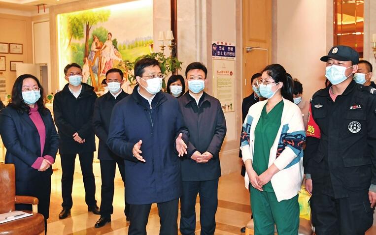 省委常委、市委書記韋韜在小店區的儲備隔離酒店督導檢查疫情防控工作。梁琛 攝