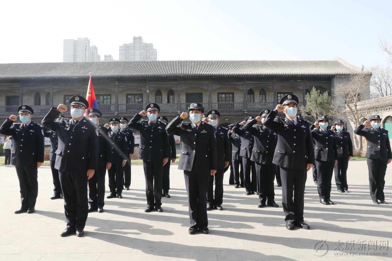 在古樸典雅的國民師范舊址辦公樓前,全體民警面對鮮紅的黨旗,高舉右手,莊嚴宣誓,用誓詞表達了繼承和發揚革命先輩的優良傳統,進一步堅定理想信念,永葆革命本色,牢記歷史使命,以實際行動踐行“人民警察為人民”的莊嚴承諾。