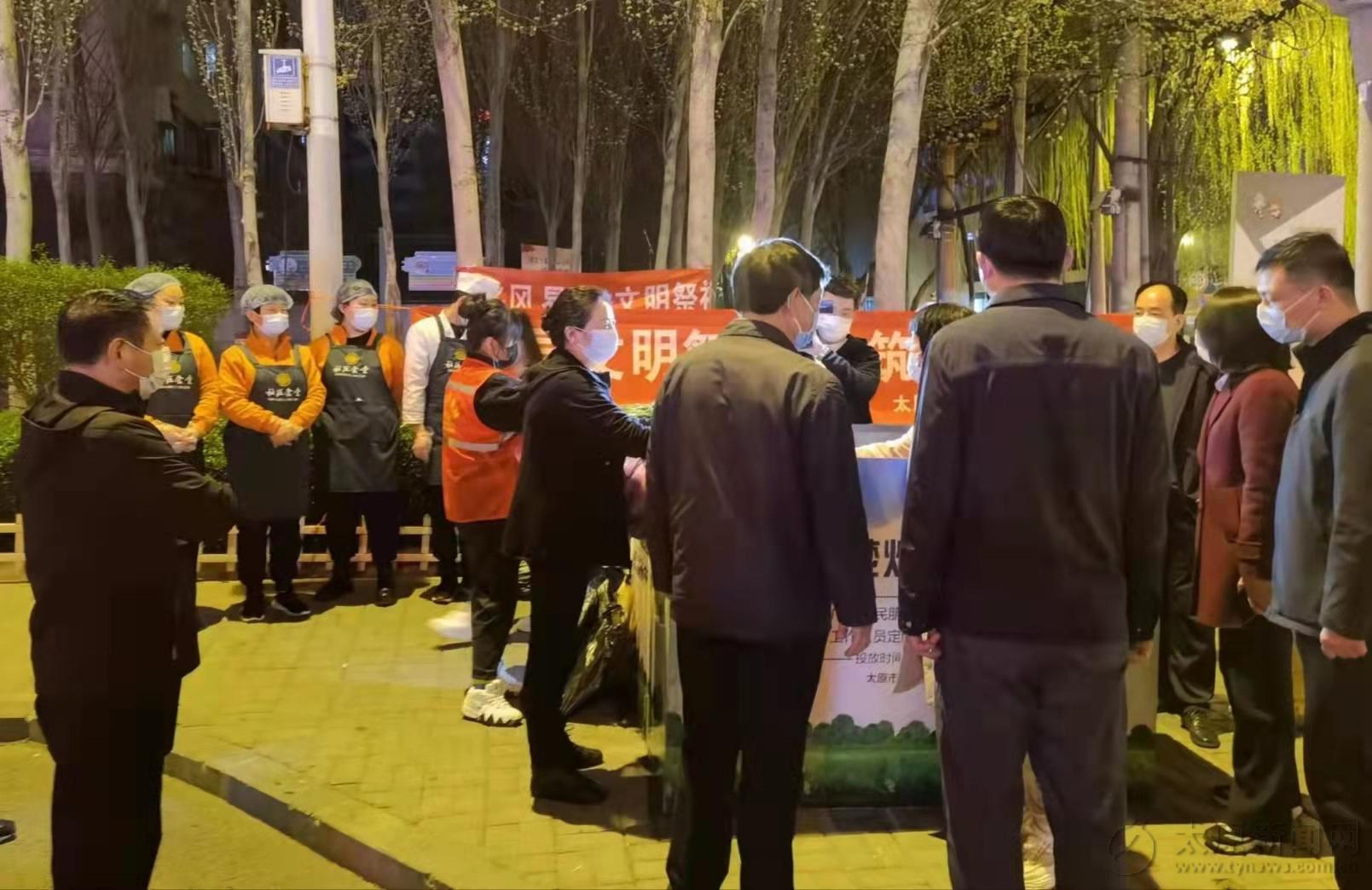 在望景路漪汾南街口附近、漪汾街二口附近值守的濱河社區、漪汾苑社區工作人員和社區志愿者們端著熱乎乎的飯菜,紛紛感謝前來送餐的后北屯社區食堂的工作人員。“看著真香啊,能吃上熱乎乎的飯菜,謝謝你們,辛苦了!”“在得知清明節值班社區工作人員不能及時吃飯時,我們希望做一些力所能及,能為大家盡一份綿薄之力,我心里很踏實。”后北屯社區食堂負責人說,為保證大家吃得安全、吃得放心,他們在做好自身疫情防控工作的同時,從食材采購、備菜、炒菜到打包、送餐,每個過程都嚴格把關,搭配不同種類的菜品,以保證一線工作人員的營養需求。