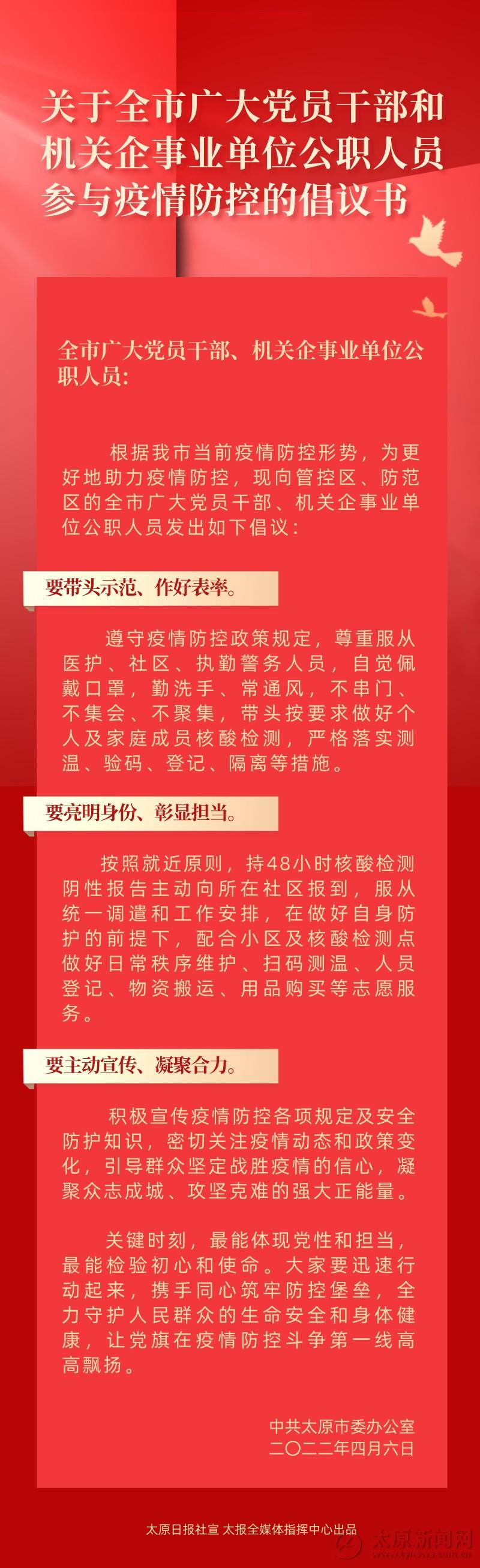 【長海報】關于全市廣大黨員干部和機關企事業單位公職人員參與疫情防控的倡議書