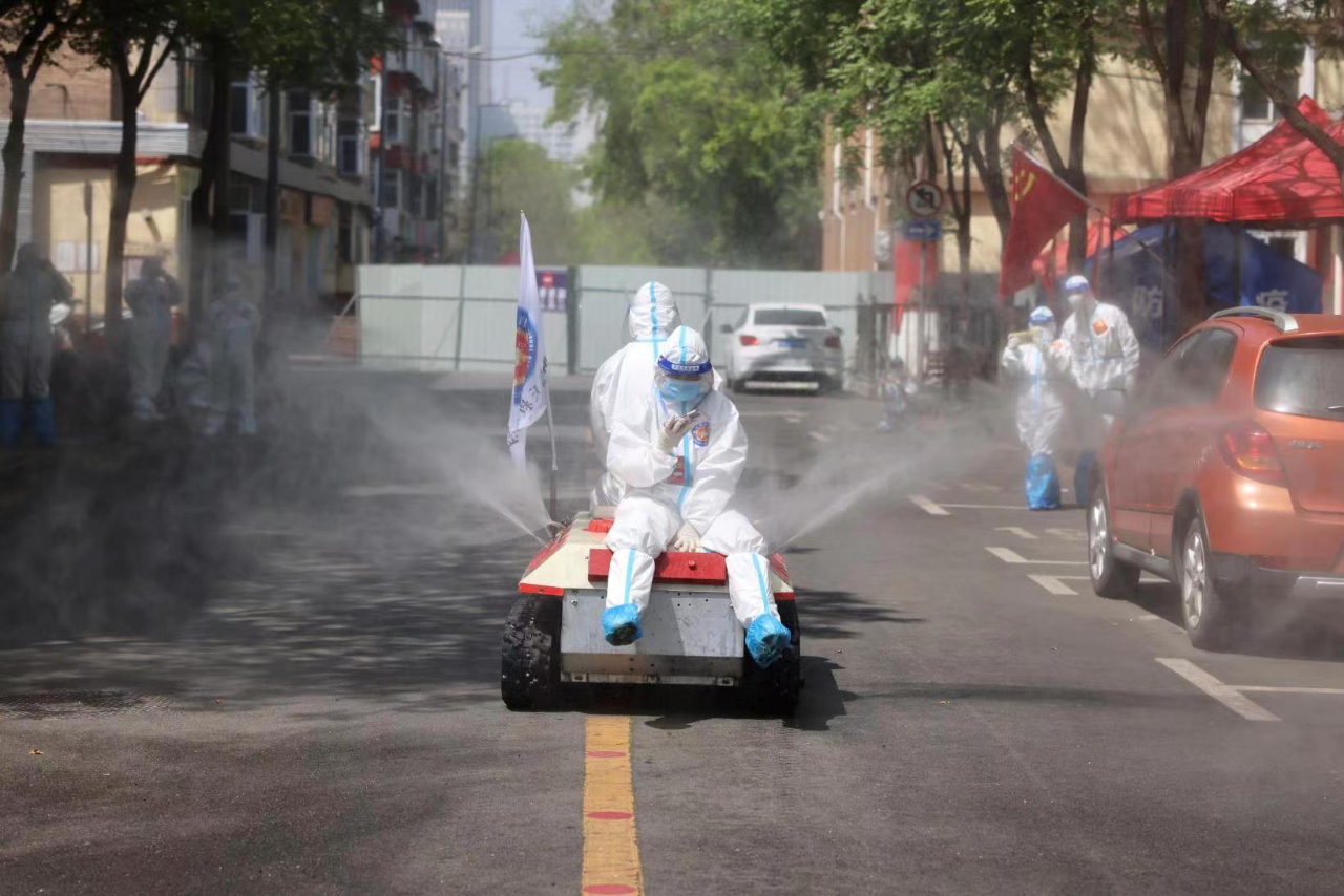 記者從現場了解到,曾經奔赴武漢抗“疫”一線的消殺“功臣”——防疫消殺“小坦克”,也被派往這次的消殺任務中。“小坦克”一小時可以處理超過4萬平方米的消殺面積,這是人力遠遠難以達到的,可實現遠程操控、定點線路無人駕駛及平行駕駛等操作模式無縫轉換,不僅能避免人工消毒可能帶來的交叉感染,也可節約人力資源。