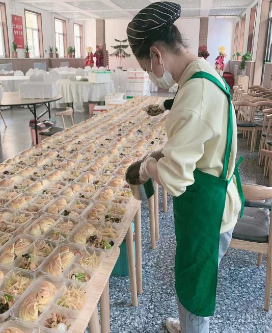 三晉餐飲連鎖有限公司社區食堂積極響應,不但保證餐食的營養標準,員工們還化身“外賣小哥”負責準時配送,讓抗疫工作人員“暖胃又暖心”。從4月初開始,該社區食堂廚房內,廚師們天不亮就起床、直至午夜時分才能休息,每個人都加班加點,備料、烹制、分餐、打包、運送……各環節井然有序,忙得熱火朝天。每一個餐盒都經過廚師們精心調配——紅燒肉、過油肉、香菇油菜、水餃、包子、清炒土豆絲……早、中、晚,餐餐不重復,天天換花樣,葷素科學搭配,營養均衡。