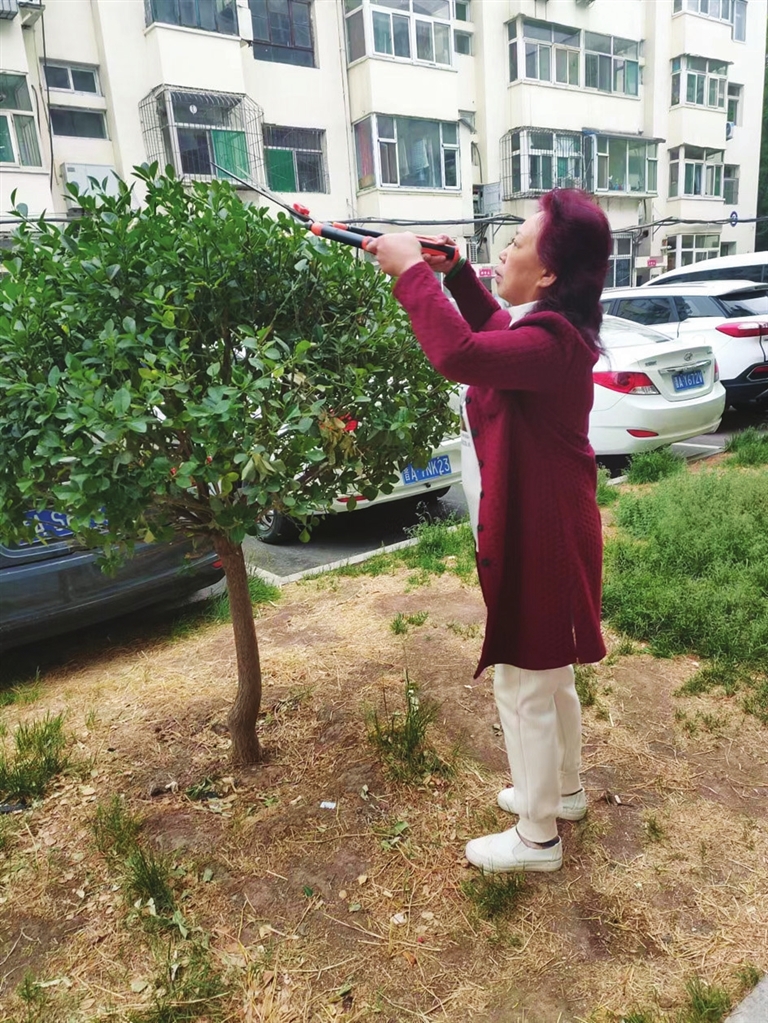 “春天來了,綠植返青,咱也給院里美美容……”剛剛過完“五一”,寇莊西路36號院的居民田俊仙、郝麗娜兩位大姐就忙乎上了??吹皆豪锟葜Σ簧伲瓭山值滥蟽拳h街二社區買來園藝剪,兩位大姐用剪刀將院子里的茶樹和灌木剪得漂漂亮亮。清理綠化帶的雜物后,又提桶澆水幫助綠植返青。解南二社區的居民,則在小區物業的帶領下,加入“迎春”行列,為小區新綠枝丫修建造型,去除舊枝。經過一番整理,小區更加整潔,老人在涼亭聊天、小孩在院內玩耍,一幅其樂融融的景象。