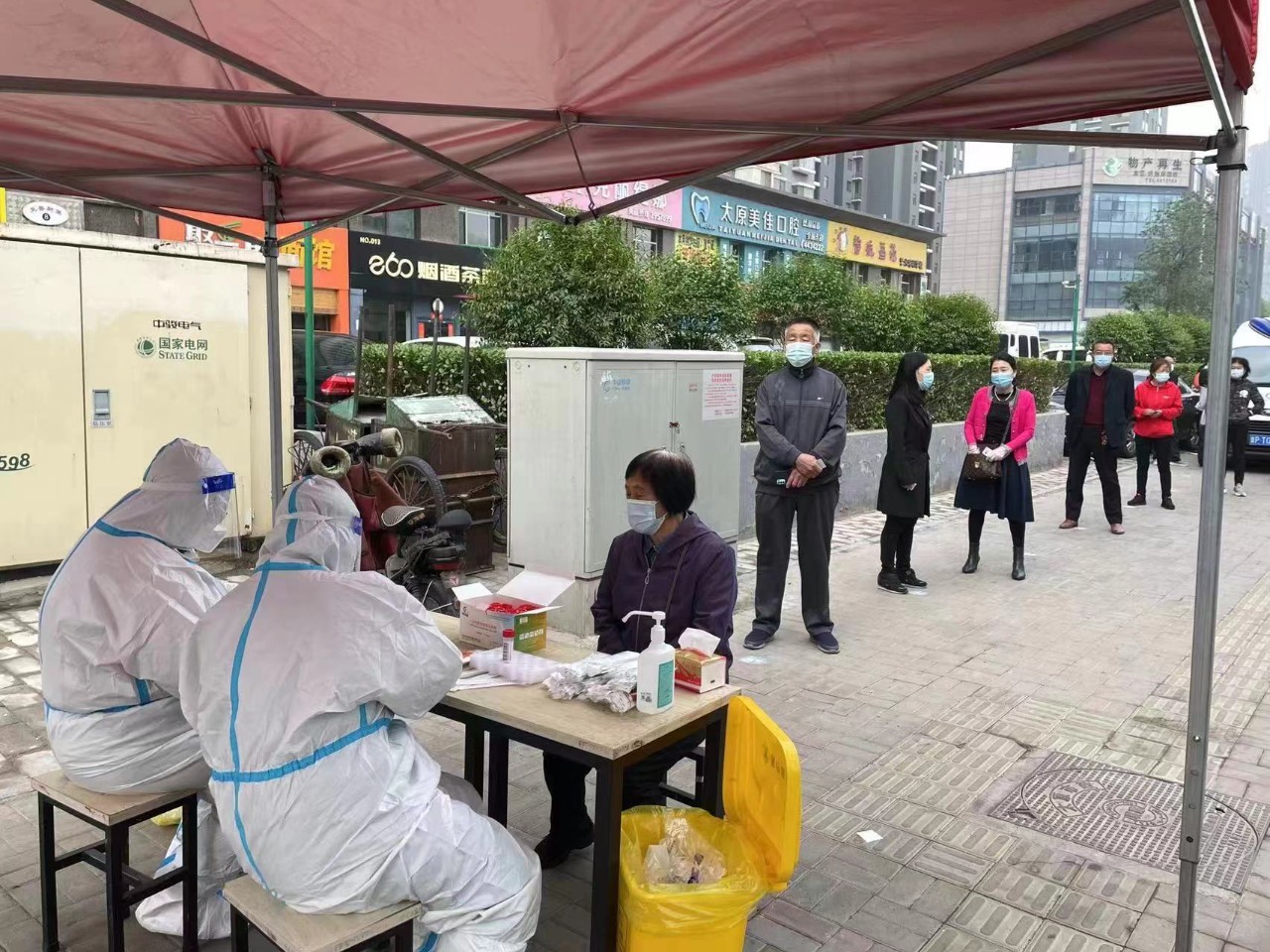 在西苑社區,為保證采樣點的運轉更加高效、精準,采樣點設在小區門口,場地空曠,出入方便,現場設置了兩個采樣臺,前來采樣的居民在工作人員指引下按照“2米線”排隊等候、有序掃碼登記,同時設置綠色通道,對孕婦、老人、小孩等特殊群體,由工作人員負責引導采樣。“經過三次全員核酸檢測,我們不斷總結經驗,優化檢測流程和細節,這回在每個點位都安排專人負責,做好現場協調、消殺、轉運的工作。”西苑社區副書記殷旋介紹到,社區現有常住人口5673人,配備了3個采集服務組,有20多人現場服務,確保采樣工作安全有序高效。
