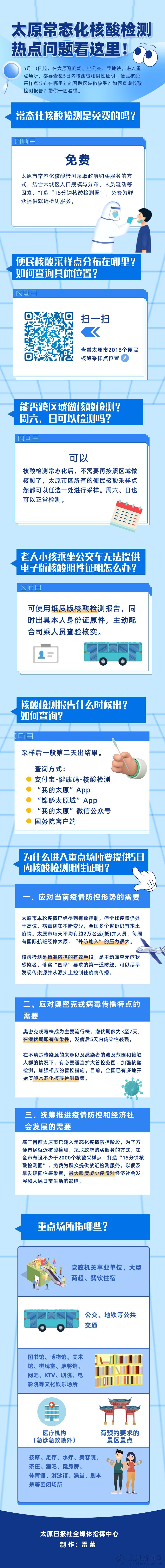 5月10日起,在太原逛商場、坐公交、乘地鐵,進入重點場所,都要查驗5日內核酸檢測陰性證明。便民核酸采樣點分布在哪里?能否跨區域做核酸?如何查詢核酸檢測報告?帶你一圖看懂。