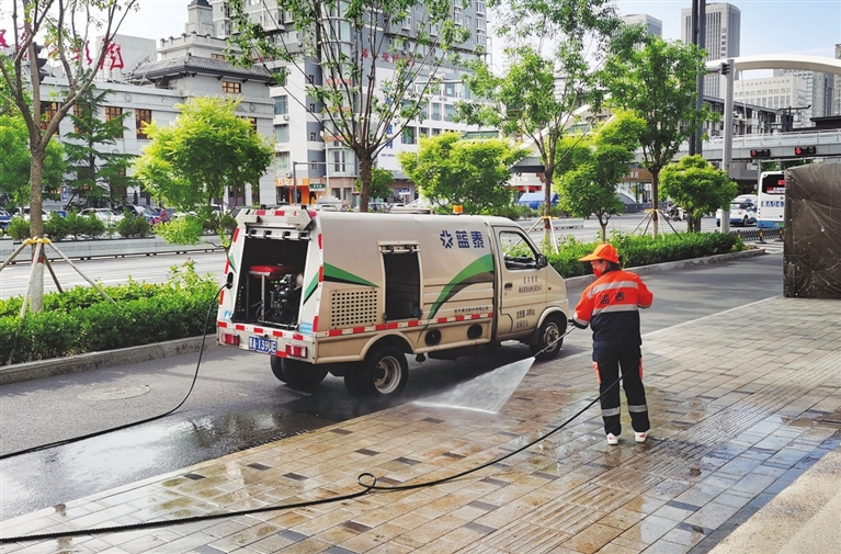 昨日清晨時(shí)分,一輛輛沖洗車、濕掃車、水車集體出動(dòng),環(huán)衛(wèi)工人彼此招呼著,開始又一天的濕式化清掃和沖洗作業(yè)。按照創(chuàng)建國家衛(wèi)生城市的要求,市、區(qū)兩級(jí)環(huán)衛(wèi)部門已加大濕式化作業(yè)頻次,提升道路潔凈度,力爭(zhēng)給廣大市民提供干凈整潔的市容環(huán)境。