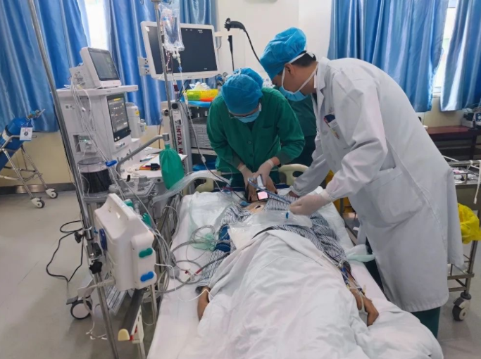 該患者患有酒精性脂肪性肝硬化,出現過多次嘔血及黑便伴休克,內科止血治療效果差,但其體質特殊不耐受普通胃鏡診治,即使刷牙都惡心嘔吐明顯。為了解除食管胃底靜脈曲張破裂出血對患者生命的威脅、減輕患者的痛苦,內窺鏡室郭補偉主任與麻醉科李會勝主任在對患者進行了充分的評估后,決定為患者進行氣管插管全麻下,經胃鏡行食管胃底靜脈曲張硬化治療術加組織膠粘堵治療術,并請山西省人民醫院消化及內鏡中心主任汪嶸教授前來指導協助。內窺鏡室護士長石秀蘭帶領科室護理人積極配合,經過近2小時時間,內鏡醫師、麻醉師、護理人員團結協作,整個治療過程均十分順利。