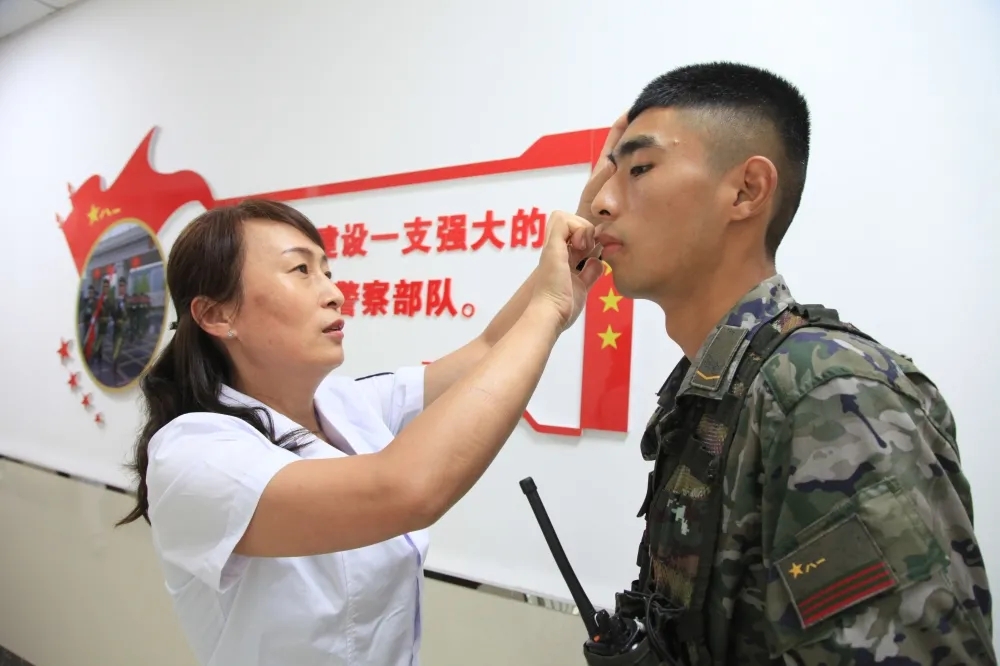 座談會結束后,院領導一行聽取了由部隊官兵開展的國防知識講座,并安排醫務人員結合部隊日常作訓實際,為官兵送去了常見傳染病防治、海姆立克急救、外傷止血、頸椎病預防等健康知識,醫院護理團隊還生動形象地表演了“心肺復蘇進萬家”情景劇,進一步提升了官兵應對突發意外等情況下的急救能力。隨后,醫務人員針對訓練中容易出現的健康問題,舉辦了健康義診活動,特別是中醫專家們充分施展“看家本領”,開展了特色中醫針灸等診療技術操作,為部隊官兵們把脈問診、治療開方,得到同志們的一致好評。
