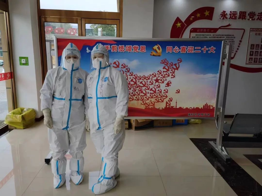 醫保科趙青是醫院老職工,腿患滑膜軟骨瘤,接受手術治療,但在疫情面前她毅然選擇支援一線,赴柴村社區多福廣場采核酸。