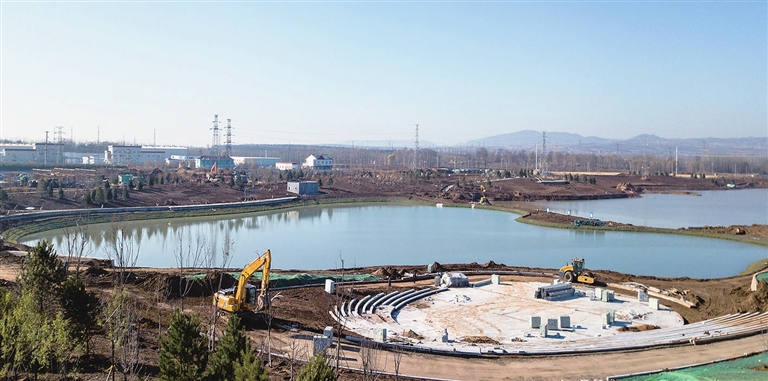 11月16日,太忻一體化經濟區(太原區)緩洪池公園工程現場,施工人員正在進行綠化和景觀建設。項目完工后,將提升核心區的防洪能力,又增添新的景點。牛利敏 宋衛東 攝