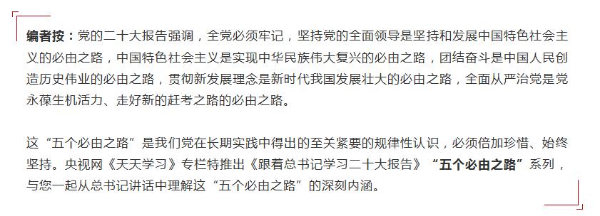 習近平總書記在黨的二十大報告中強調全黨必須牢記五個“必由之路”,其中“堅持黨的全面領導是堅持和發展中國特色社會主義的必由之路”居于首位。