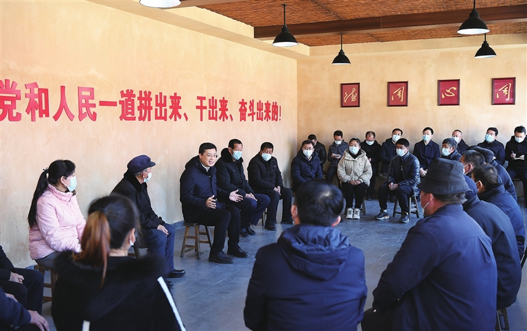 省委常委、市委書記韋韜在古交市岔口鄉關頭村與群眾代表、基層干部座談并宣講黨的二十大精神。梁琛 攝