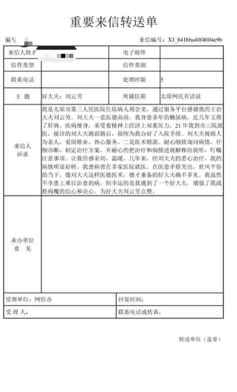 今年2月,市委網信辦收到兩封病人感謝劉云芳醫師的信件,盡管有些語句并不通順、篇幅不長,但質樸的字里行間充滿了他們對劉云芳醫師濃濃的感激之情,在她收到的無數感謝信中,病人們總是強調她的耐心、熱情、認真,不僅讓病人們病情好轉,更讓他們重拾對生活的希望、對未來的期盼。