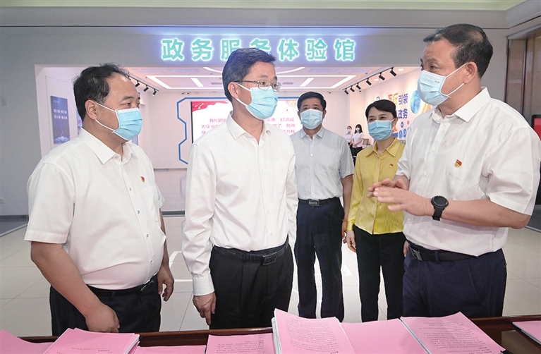 6月20日,省委書記藍佛安在省行政審批服務管理局督導調研主題教育開展情況,實地考察優化營商環境、打造優質高效便捷政務服務平臺等工作,并主持召開座談會。他強調,第一批主題教育單位黨委(黨組)要堅決扛牢主體責任,堅持高標準嚴要求整體推進;主要負責同志要履行好第一責任人職責,堅持以身作則、以上率下,發揮頭雁效應;巡回指導組要聚焦主題主線,堅持真督實導、精準指導,共同推動學習再深入、調研再深入、檢視再深入、整改再深入,推動主題教育成果轉化為高質量發展實際成效。省領導陳安麗、李鳳岐、湯志平參加。