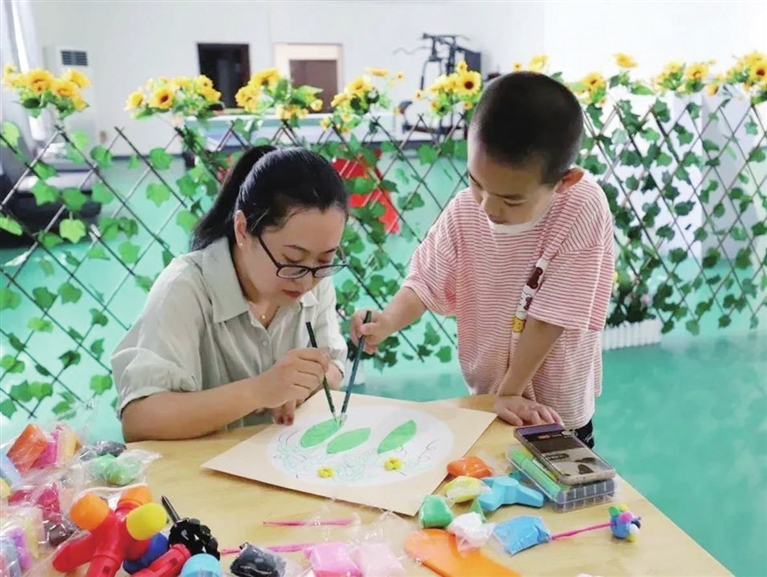 暑期愛心托管班志愿者細心照顧孩子。