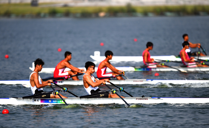 8月24日,汾河景區(qū)水上運(yùn)動(dòng)中心第一屆全國(guó)學(xué)生(青年)運(yùn)動(dòng)會(huì)(公開組)賽艇項(xiàng)目預(yù)賽開賽,來自全國(guó)27支代表隊(duì),559名選手分組角逐,爭(zhēng)奪賽艇項(xiàng)目的決賽資格。韓雙喜 牛利敏 攝