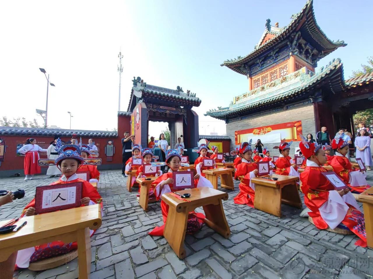 整理衣冠、朱砂開智、啟蒙描紅、許愿留念……9月12日,一場古色古香的“開筆禮”在太原市唱經樓內舉行。來自校尉營小學校的學生們身著狀元服行“開筆禮”,以此開啟新學期。