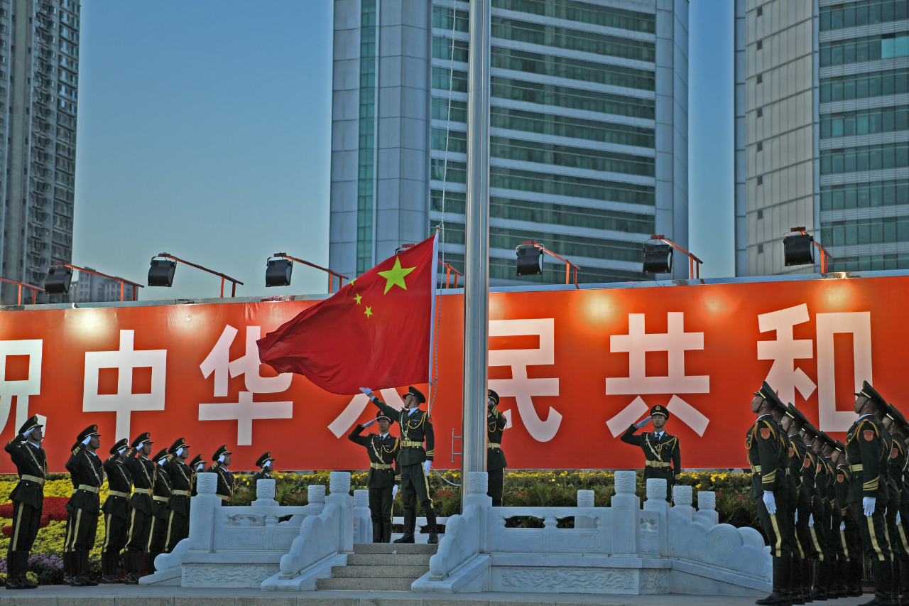 慶祝中華人民共和國成立74周年,培育和踐行社會主義核心價值觀,大力弘揚(yáng)愛國主義精神,我市于10月1日在五一廣場舉行國慶升國旗儀式。李學(xué)軍 梁琛 攝