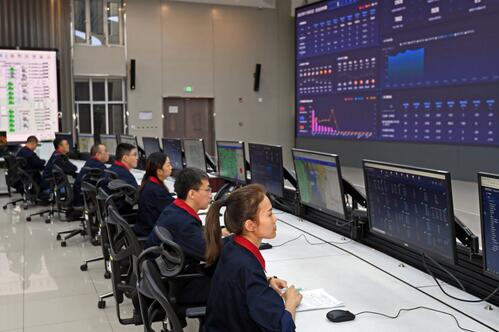 11月5日,太原熱力集團調度中心工作人員通過智慧供熱平臺監測調控各換熱站的運行參數,以確保熱量供需平衡,全市供暖穩定。梁琛 攝