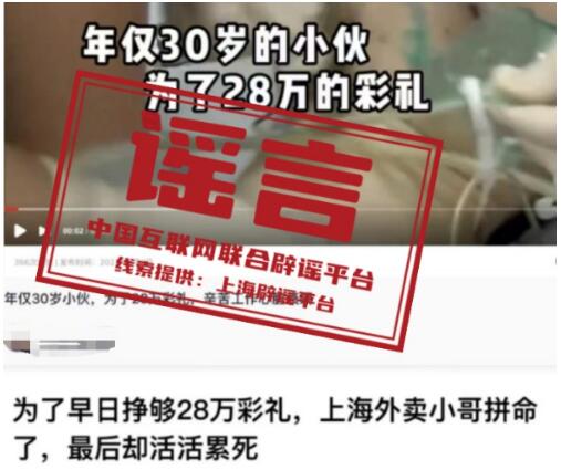 謠言:上海外賣小哥為28萬彩禮加班活活累死?