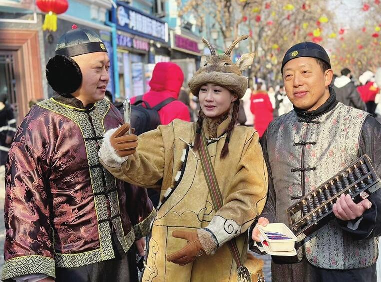 “大家請看,這是來自太原的‘晉商東家’!他們免費向游客贈送醋禮。我剛和他們合影了!”我市文旅工作人員的裝扮以及贈送醋禮的舉動,引發在中央大街拍視頻、直播的網紅們的關注,成為網絡短視頻的鮮活素材。一位頭戴狍角帽的鄂倫春族姑娘,也興致勃勃地走近“晉商東家”和太原文旅直播現場,合影留念。在文旅直播間,觀看總人數從數萬到十萬,再到幾十萬,不斷增長。