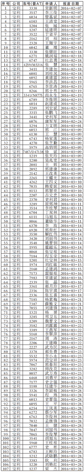 山西寶利出租汽車有限公司簡稱(寶利)。