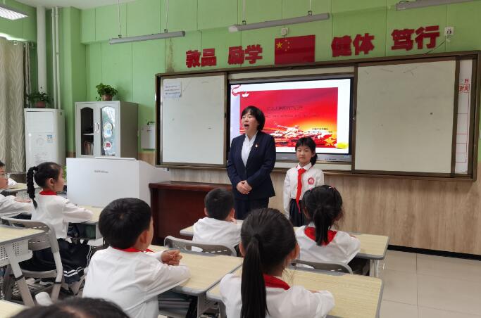 4月25日上午,五一路小學的紅領巾講解員在教室講述紅色故事,傳承革命傳統,弘揚愛國精神。為紀念太原解放75周年,杏花嶺區青志協與太原解放紀念館攜手,在轄區小學校組織開展宣講活動,來自全區的100多名紅領巾講解員參與宣講。張國英 攝