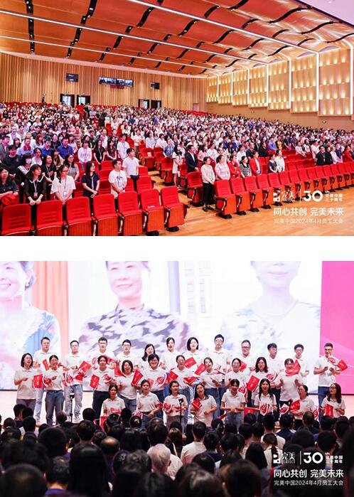 4月26日,值此完美公司生日月之際,完美公司在完美華南基地會議中心中山廳召開了2024年4月員工大會。完美公司董事長古潤金、總公司高管及全體員工相聚在一起,以團結奮進、砥礪前行的奮斗與實干精神,共同慶祝完美公司30周年,助力公司高質量發展。