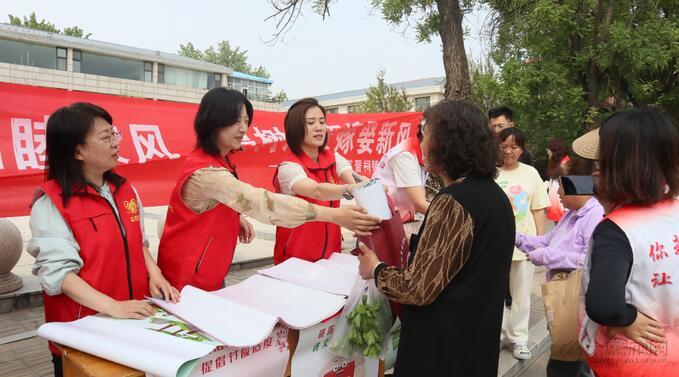 活動(dòng)現(xiàn)場(chǎng),人頭攢動(dòng),熱鬧非凡。工作人員設(shè)置宣傳臺(tái),懸掛宣傳條幅,為來往群眾發(fā)放宣傳海報(bào)、宣傳包、圍裙等宣傳物資,并充分利用小喇叭循環(huán)播放移風(fēng)易俗倡議書,吸引了周邊不少群眾駐足圍觀。工作人員向來往群眾耐心細(xì)致地講解本次宣傳活動(dòng)的主題及婚俗改革新內(nèi)容,倡導(dǎo)廣大居民在婚喪嫁娶等事宜中自覺做到不攀比、不大操大辦,樹立科學(xué)文明的生活理念、弘揚(yáng)勤儉節(jié)約的優(yōu)良傳統(tǒng)。