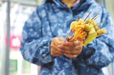沾串兒的“沾”字其實是“蘸”的諧音字,這樣叫,一是為了簡化,二是為了便于識別太原特色小吃。好吃的沾串兒,皆因醬料勝出。太原街頭到處是沾串兒的小店,類似開化寺街小濺沾串、橋東街胖姐沾串串這些超過五年、十年的老店隨處可見。而在沾串兒界的“江湖”里,義井沾串兒不可不提。義井集貿市場小吃街的成名,它功不可沒。走進義井集貿市場小吃街,各沾串兒小攤前一律站著一大群人,他們手持竹串,圍著蘸料桶,美美地享受著味蕾間的“搖滾”,感受那份屬于太原的獨特“召喚”。
