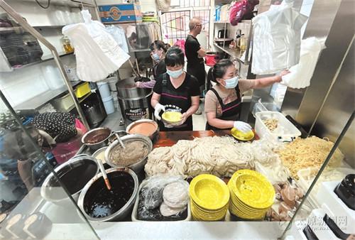 “只要天一熱,不想在家里開火做飯,我就帶著姑娘來店里吃。這家店開了有20多年了,不光我姑娘從小吃他家的面皮,連我也經常吃。”7月6日下午,市民趙旋玉帶著女兒,和記者一邊走,一邊聊,“他家店不遠,這當會兒,你都不用看招牌,跟著人群走就行。看見哪個店門口人多,就是了。”