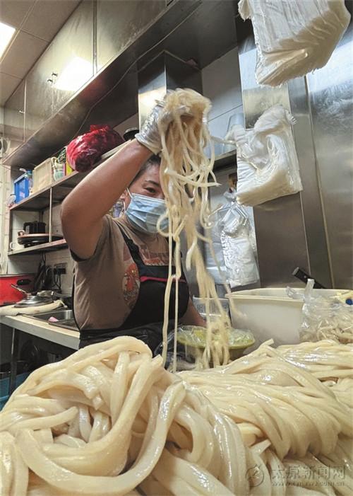 到了2008年,18歲的秦輝從漢中來到太原,開始接替父母,獨立經營面皮店。“賣面皮其實是個良心活兒。為了新鮮、口感好,面皮必須是當天早上現做。要是耍滑,往面皮里添加防腐劑,確實能保持面皮的新鮮,但弄虛作假,早晚會把顧客丟了。所以從我父親開始,就堅持當天做,當天賣。”回憶當初,秦輝還是十分感慨,“那時候,每天早上5點就要起床。趕在早上8點前,把面皮制作好,再從幾公里外的住處,把幾百斤面皮運到店里。一直賣到晚上9點以后,才能打烊,確實非常辛苦。”