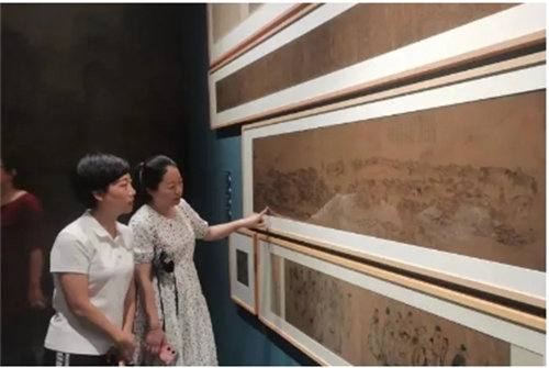 步入展廳,仿佛穿越時空隧道,眾多平時難以謀面的國寶級繪畫在此集結,高清打樣稿、數字作品、出版物及珍貴文獻,讓參觀者得以近距離細賞這些畫作的每一個精妙細節。觀展者趙月鈔與友人駐足于宋代畫作前,不禁贊嘆:“畫中人物栩栩如生,山水間的草木仿佛都有了生命。”