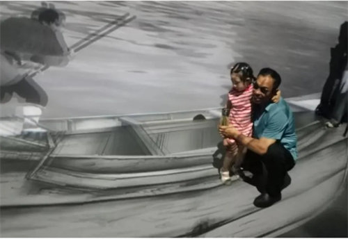 在展廳內的“光影丹青”沉浸式互動體驗區,一幅幅靜止的中國古代繪畫,穿越時間阻隔,突破空間距離,變成了一個個生動的畫中世界。在層層疊疊的光影中,《落花游魚圖》《溪山無盡圖》等收藏于海外博物館的中國古代繪畫精品,運用虛擬現實引擎驅動空間投影技術、全新的空間音頻智能處理技術和視、聽、觸、嗅多感官實時交互裝置,讓水墨丹青所蘊含的傳統文化從歷史走進現實。觀眾站在這片光影交錯的空間中,仿佛置身于千年前的山水畫卷之中,與古人共乘一葉扁舟,共賞一片美景。