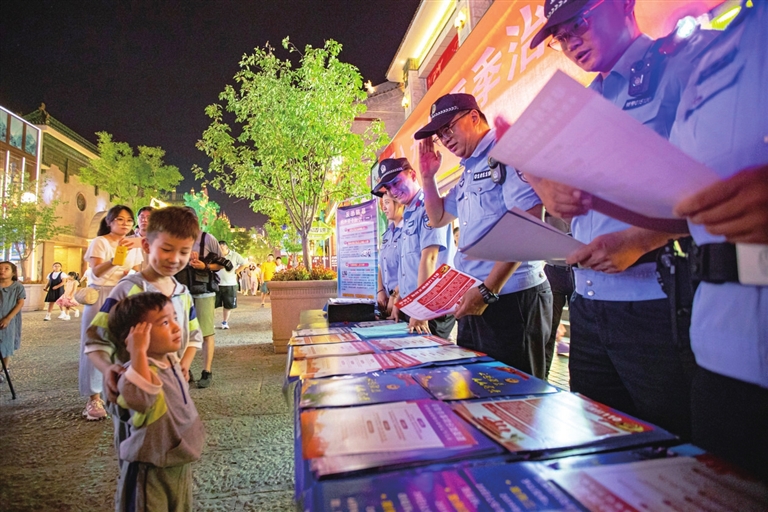 廣場、商圈、城市街角的巡邏人員隨處可見,手持小喇叭在夜市、燒烤攤宣講安全的民警火速“出圈”,將市民安全感直接拉滿。