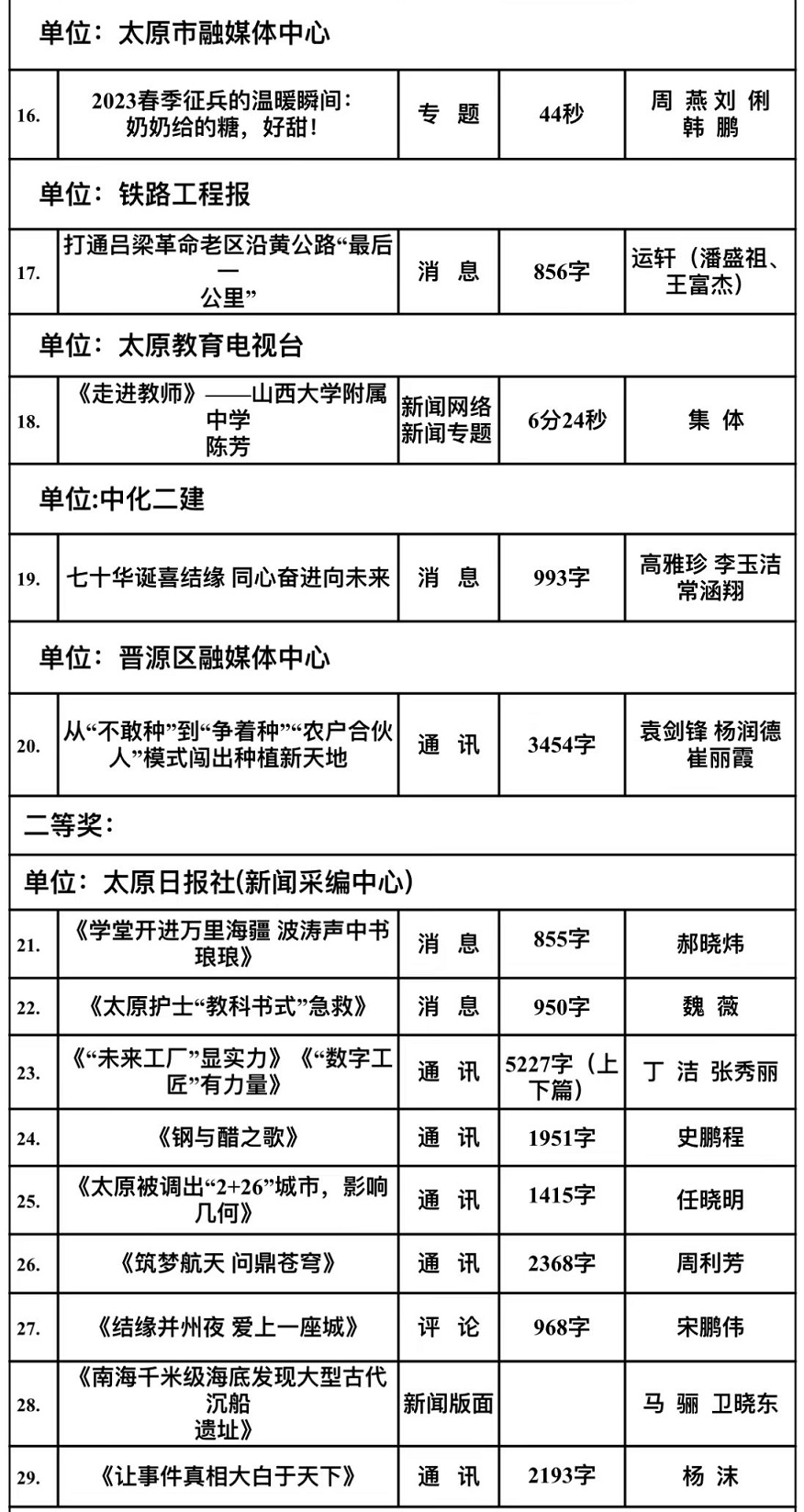 第三十三屆(2023年度)太原新聞獎評選揭曉公示