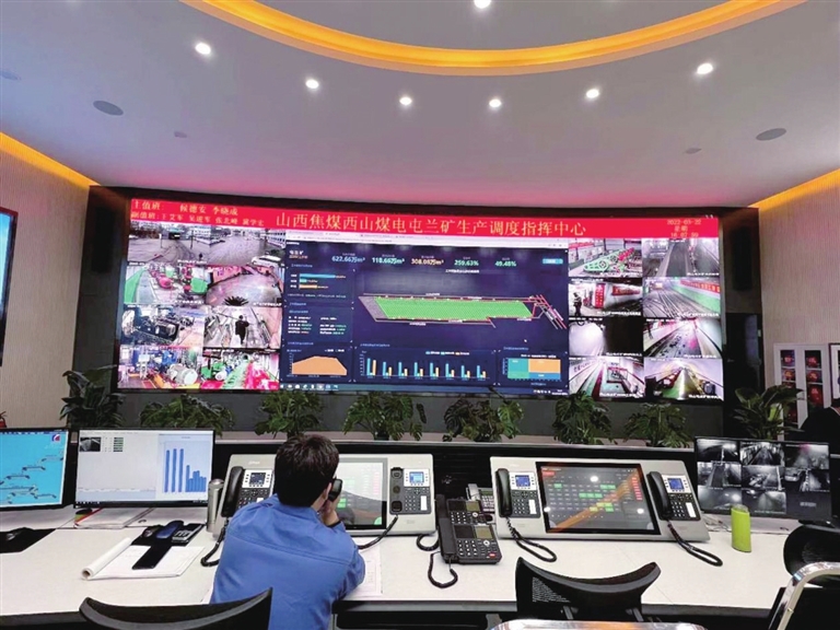 現在的山西焦煤馬蘭礦,工作人員在集控硐室按下中控按鈕。我們在連接工作面的顯示屏上看到,采煤機徐徐啟動,液壓支架緊隨其后、自動跟進,煤炭傾瀉而下。而在過去,至少需要3個采煤機司機和2個液壓支架工現場操作,才能完成同樣的工作。