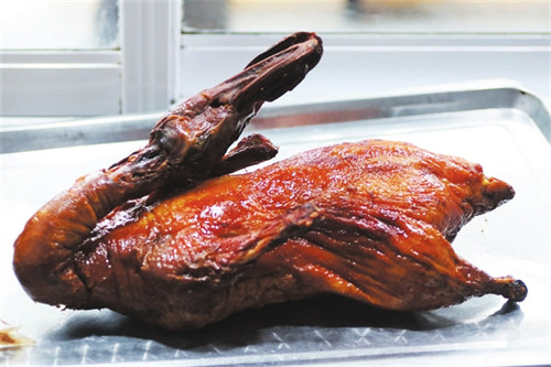“腌制的時間不能太久,隨季節(jié)把握,夏天鴨子肉質(zhì)松軟,時間便短一些,冬天鴨子肉質(zhì)緊實,腌制的時間就需要相對久一點,總體來講,要控制在15分鐘至20分鐘之內(nèi)。”分秒琢磨間,盡顯十八烤鴨店對品質(zhì)的高要求。