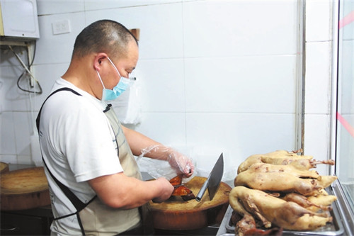“我家前兩天來了一個客人,他說在別處吃的烤鴨都沒有你家的味道好!”家住鐵三局宿舍的宋女士在窗口跟陳大姐熱絡(luò)地聊著天,稱贊好味道。