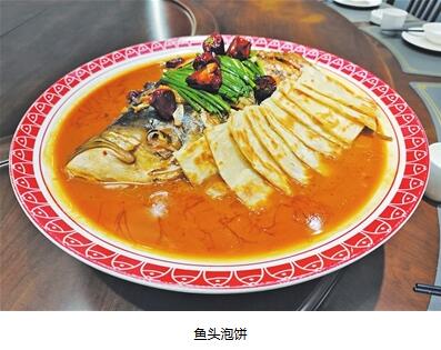 的確如此,飯莊的魚頭泡餅屬于限量供應。選用千島湖的鳙魚,俗稱“胖頭魚”,經過秘料腌制去除腥味再以高湯小火慢燉,配以酥脆烙餅,魚頭咸鮮微辣,香味濃郁,烙餅酥脆,現烙現吃,蘸湯后味道更是一絕。