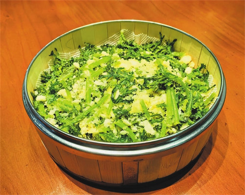 “鮮蒸現(xiàn)炒回歸自然”這是門頭上店名下方標注的一行小字,也是店中菜品的顯著特點。在呂梁看來,要以返璞歸真的技藝,做出原汁原味的特色,送給大家最健康的舒心美食。